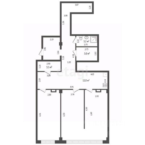 - три застекленных балкона.