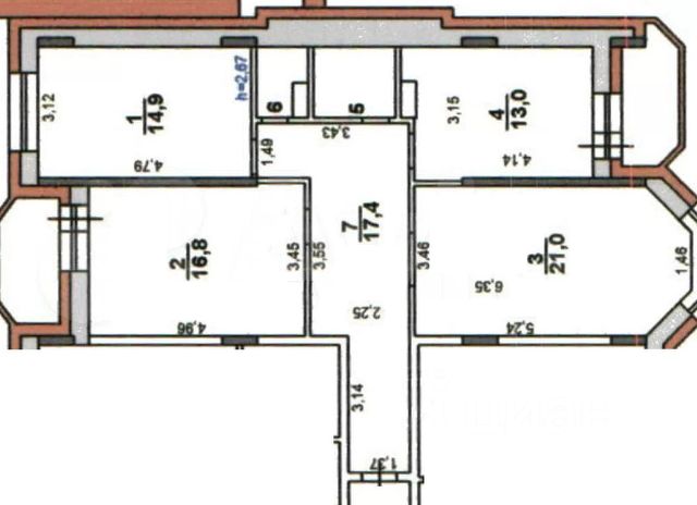 Высота потолков 3 м.
