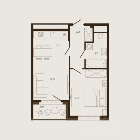Общая площадь 64,3 кв. м. Просторная кухня-гостиная 23 кв. м. Комнаты изолированные 13 и 12,5 кв. м., гардеробная 2,5 кв. м. Совмещенный с/у 5 кв. м., коридор 4,5 кв. м., балкон 2,8 кв. м.