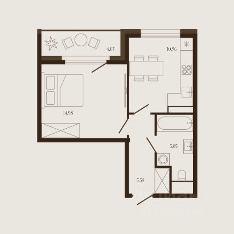 Общая площадью 28,8 кв. м., жилая 12,9 кв. м., кухня 7,4 кв.м., коридор 4,7 кв. м., шкаф 0,3 кв. м., с./у. совмещенный 3,0 кв. м., балкон застекленный 0,6 кв. м.
