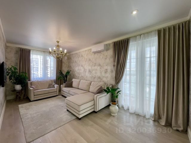 Отделка стен всех комнат декоративная, моющаяся штукатурка. Потолки натяжные. Подоконники натуральный мрамор. Окна Kommerling. Розетки и выключатели стеклянные. На полу положен ламинат. Находящаяся в комнатах мебель и люстры, кухонная мебель и встроенная техника остаются новому владельцу.