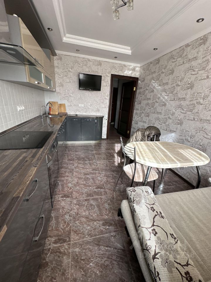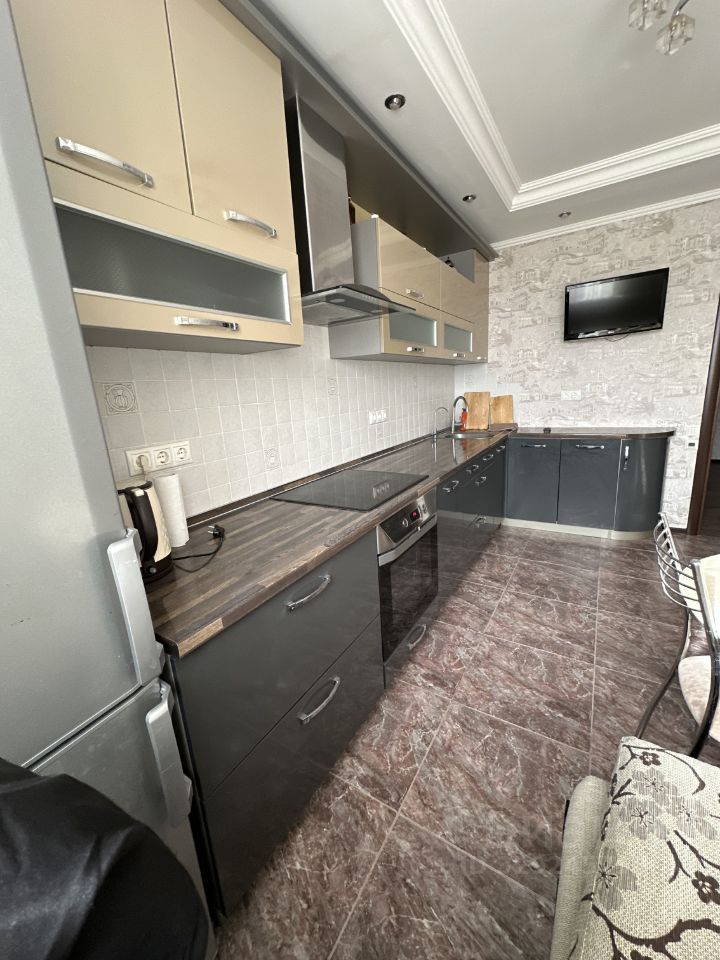 Квартира с евроремонтом, полностью оборудована мебелью и техникой. В комнате и на кухне есть вся необходимая мебель, а также холодильник, телевизор и стиральная машина. Просторный совмещённый санузел с ванной, а также балкон.