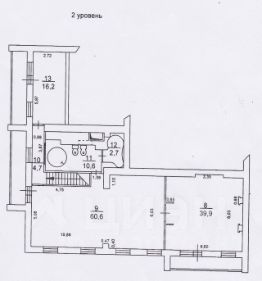 - две изолированные комнаты 39,9 и 16, 2 м2 и одна проходная 60,6 м2,