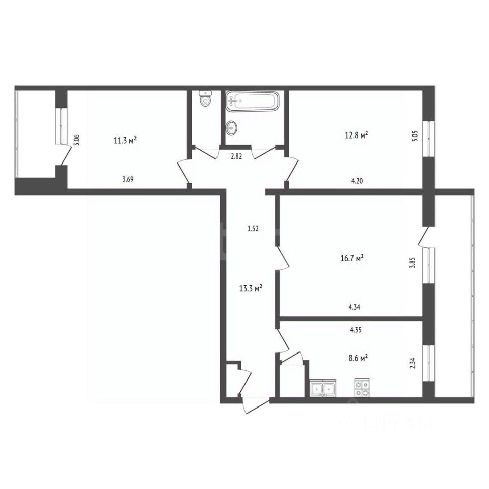 Квартира требует ремонта, учли это в стоимости. Планировка подойдёт как для большой семьи, где каждому будет своё пространство, так и для комфортного проживания со своим кабинетом или гардеробной комнатой.