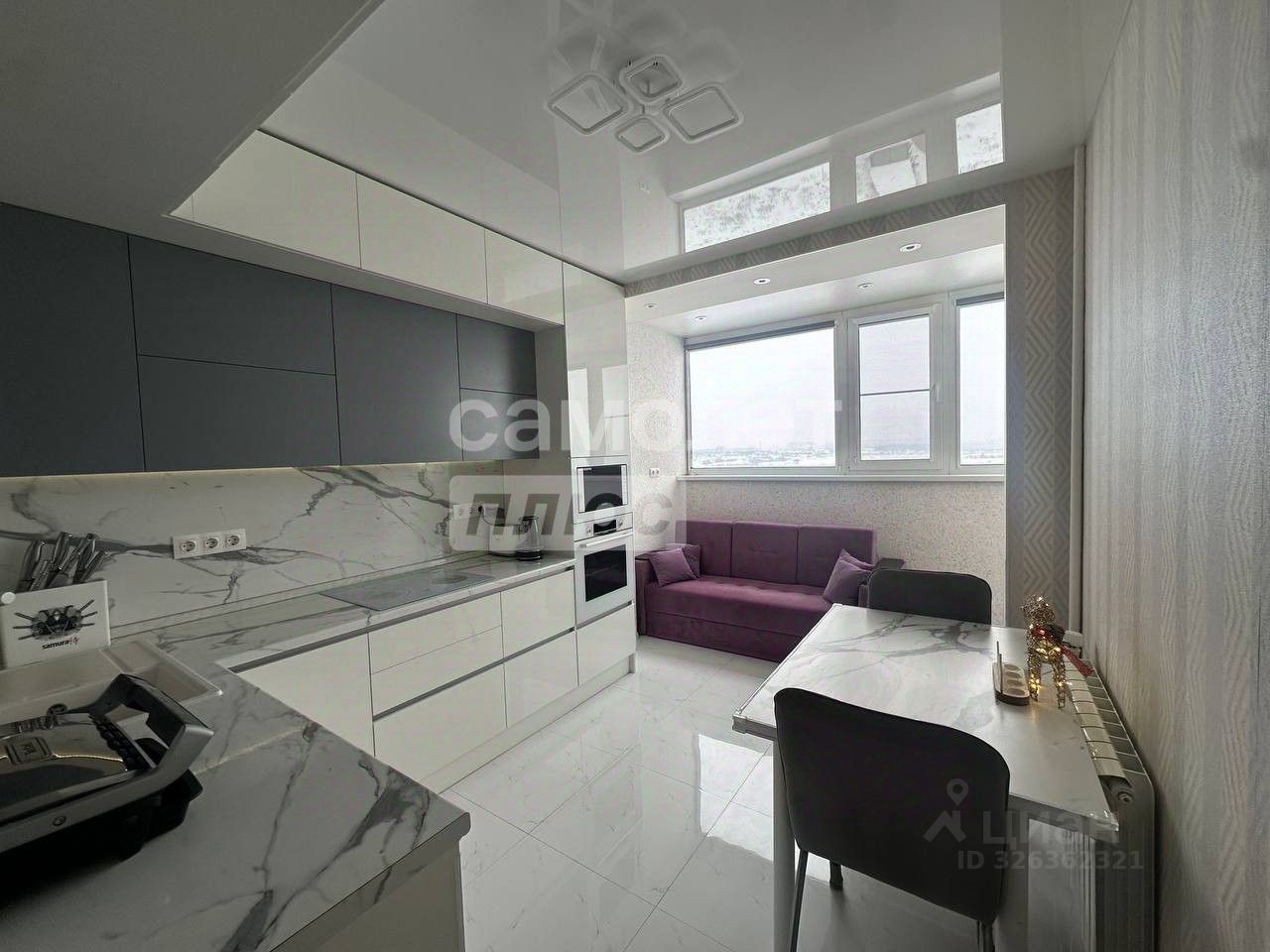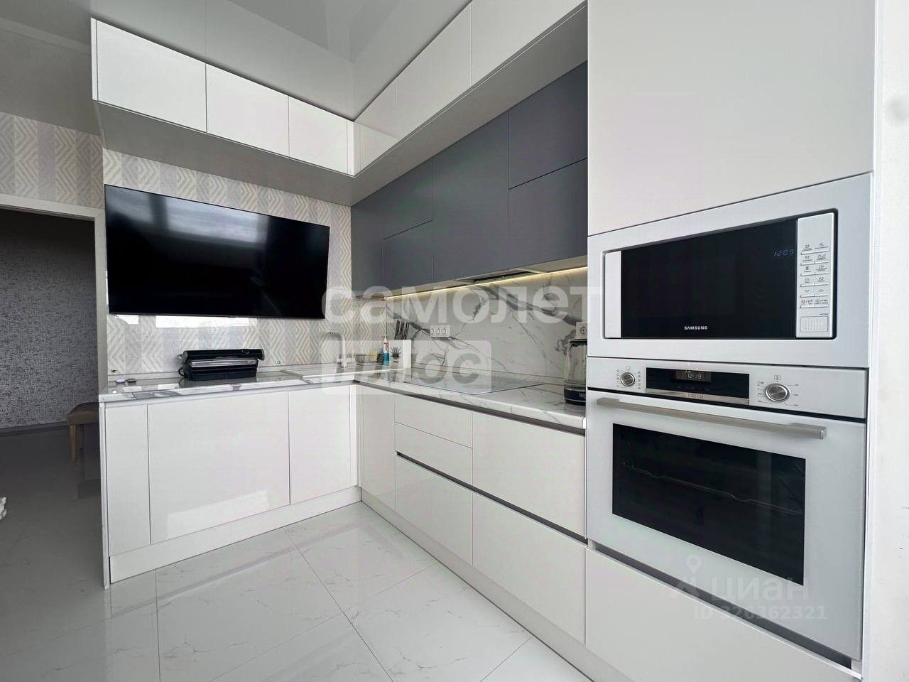 встроенной техникой: духовка и плита Bosch, микроволновая печь Samsung, посудомоечная машина DeLonghi;